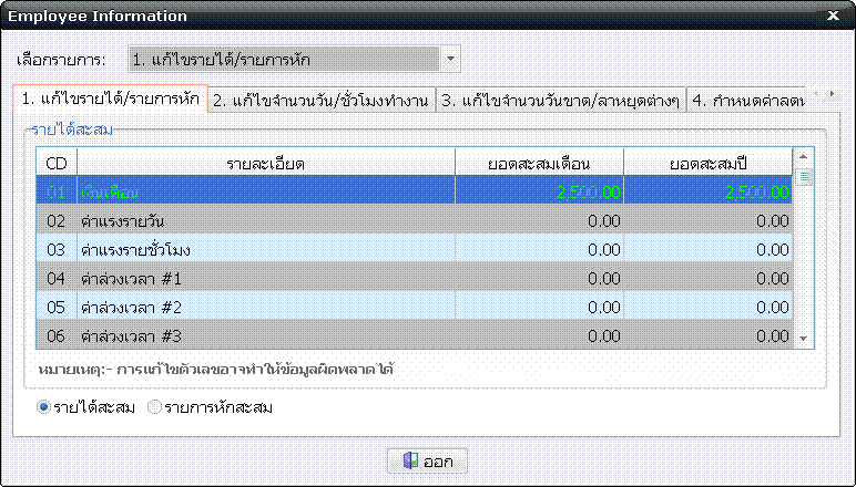 โดยปกติข้อมูลของเงินเดือนและค่าแรงจะต้องมีการเก็บสะสมยอดมาตั้งแต่ต้นปี คือในเดือนมกราคมของปีนั้นๆ โปรแกรมบัญชีเงินเดือนและค่าแรง EASY-ACC Payroll for Windows ก็เช่นกัน จะต้องมีการเก็บสะสมยอดตั้งแต่ต้นปีมา โปรแกรมจึงจะสามารถคำนวณภาษีได้อย่างถูกต้อง แต่ในกรณีที่ท่านเริ่มการใช้งานโปรแกรมระหว่างปี หมายถึงไม่ใช่เป็นการเริ่มต้นการใช้งานโปรแกรมในงวดการจ่ายแรกของปี จะต้องมีขั้นตอนการทำงานดังต่อไปนี้