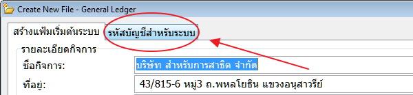 1. เรียกเข้าโปรแกรมแยกประเภท ไปยังรายการ OTHERS > สร้างแฟ้มเริ่มต้นระบบ แล้วคลิกไปที่แทป รหัสบัญชีสำหรับระบบ