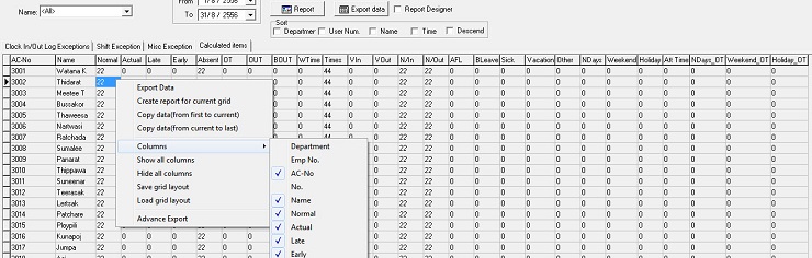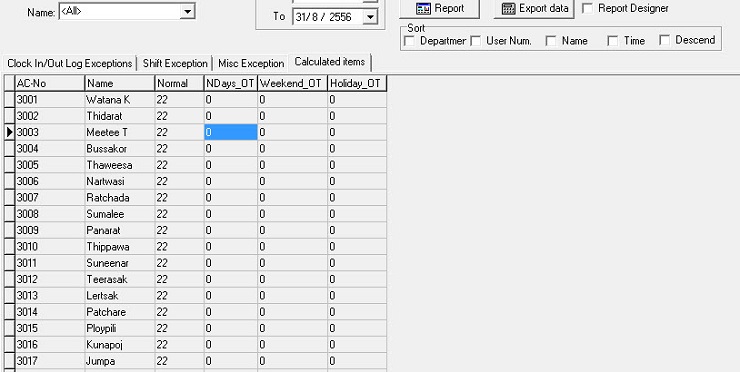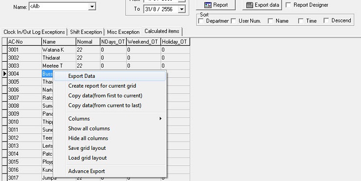 2. ให้กำหนดหนดนำข้อมูลออกเฉพาะ รหัสพนักงาน / จำนวนวันทำงาน / OT วันธรรมดา / OT วันหยุด / OT วันหยุดพิเศษ