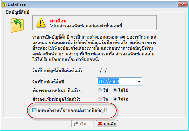 - เพิ่มขั้นตอนให้ลบรหัสพนักงานที่ลาออกให้โดยอัตโนมัติเมื่อปิดบัญชีสิ้นปี