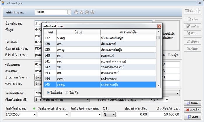 - เพิ่มรหัสคำนำหน้านามตอนบันทึกข้อมูลพนักงาน**