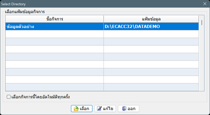 2) เลือกกิจการที่ต้องการนำเข้าข้อมูล