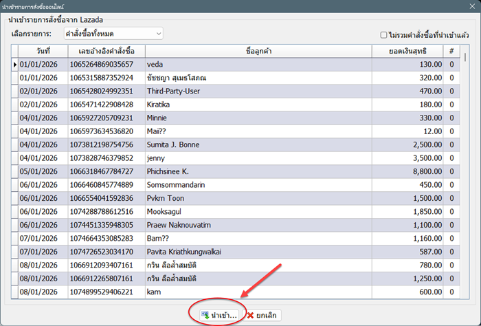 5) ข้อมูลที่จะนำเข้า จะแสดงขึ้นมาคลิก นำเข้า