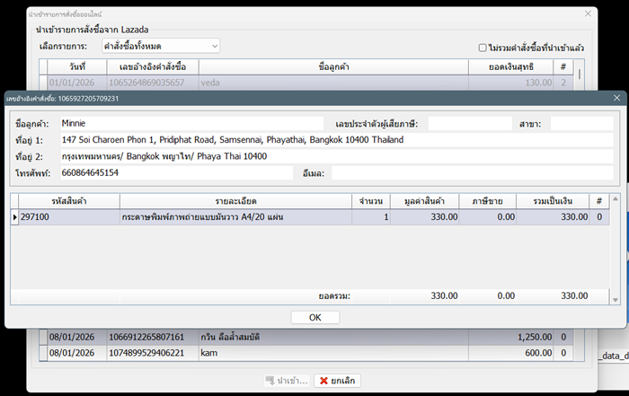 7) หากคุณต้องการดูรายละเอียดคำสั่งซื้อ ให้ดับเบิ้ลคลิกที่คำสั่งซื้อนั้น รายการก็จะแสดงออกมาบนจอภาพ