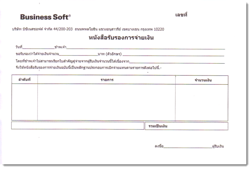 - กรอกรายละเอียลงในหนังสือรับรองการจ่ายเงินให้ครบถ้วน ได้แก่ชื่อ นามสกุล ที่อยู่ เลขประจำตัวประชาชน รายการที่ซื้อหรือรับบริการจำนวนเงิน และให้ผู้รับเงินลงนามให้เรียบร้อย