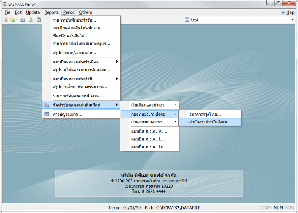 ผู้ประกอบการที่ขึ้นทะเบียนนายจ้างกับสำนักงานประกันสังคม จะต้องยื่นแบบและนำส่งเงินสมทบภายในวันที่ 15 ของเดือนถัดไป ปกติการยื่นแบบจะต้องจัดทำเอกสารและนำเงินสมทบไปชำระที่สำนักงานฯ ในปัจจุบันนายจ้างสามารถที่จะยื่นแบบและชำระเงินผ่านทางออนไลน์ได้ โดยโปรแกรม EASY-ACC Payroll ได้จัดเตรียมข้อมูลสำหรับจะใช้ยื่นผ่านทางเว็บไซด์ไว้ให้เรียบร้อยแล้ว สามารถใช้ยื่นนำส่งได้ทันที