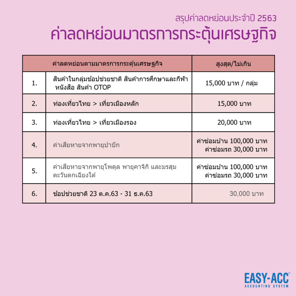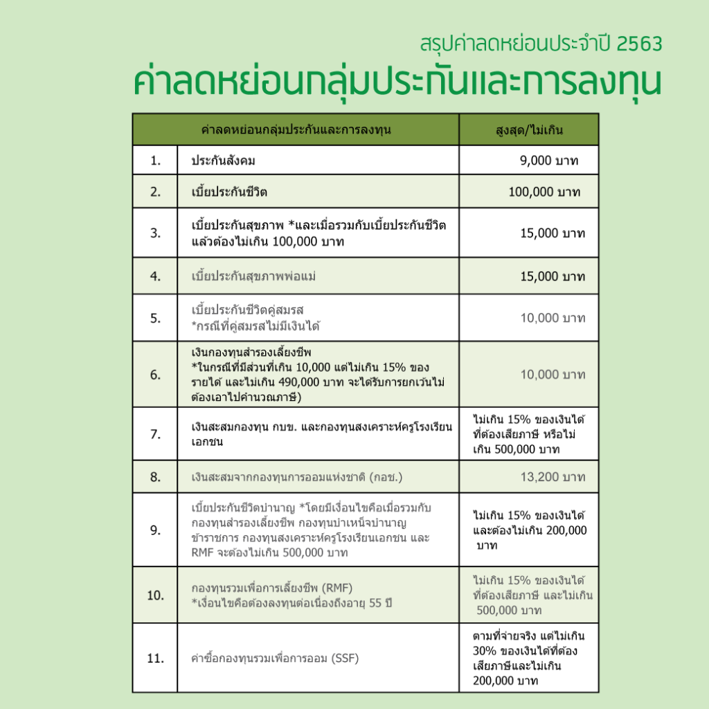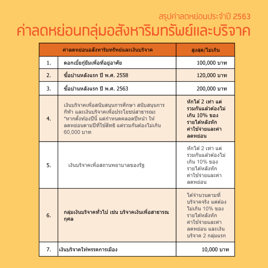 อัพเดทค่าลดหย่อนปี 2563 ล่าสุด วันที่ 14 ตุลาคม 2020 11,154 views ใกล้จะสิ้นปีแล้ว ใครที่มีภาระเรื่องภาษี คงต้องเตรียมตัวว่าสามารถนำค่าใช้จ่ายอะไรมาช่วยในการแบ่งเบาภาระลงไปบ้าง รวมทั้งมาตรการใหม่ๆ ที่เป็นการกระตุ้นเศรษฐกิจ และสามารถนำมาใช้ลดหย่อนภาษีได้ด้วย มาดูกันเลยครับ
