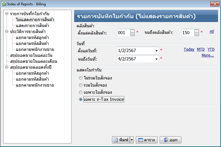 อย่างไรก็ตามเมื่อท่านได้ขึ้นทะเบียนเพื่อจัดทำ e-Tax Invoice by Time Stamp กับกรมสรรพากรแล้ว ท่านก็ยังสามารถออกใบกำกับภาษีโดยใช้กระดาษแบบเดิมได้ เพียงแต่ต้องแยกเลขใบกำกับภาษีอิเล็กทรอนิกส์ กับใบกำกับภาษีแบบกระดาษออกจากกัน ไม่ใช้เลขที่ใบกำกับภาษีทั้ง 2 แบบร่วมกัน เช่น ใบกำกับภาษีอิเล็กทรอนิกส์ ขึ้นต้นด้วย INV-xxxx ส่วนใบกำกับภาษีแบบกระดาษขึ้นต้นด้วย BI-xxxx เป็นต้น และเมื่อออกรายงานภาษีขายโดย EASY-ACC V2 ใบกำกับภาษีทั้งสองรูปแบบ ก็จะแยกให้เห็นได้อย่างชัดเจน นอกจากนี้ยังสามารถพิมพ์รายงานเพื่อดูเฉพาะใบกำกับภาษีที่ออกเป็น e-Tax Invoice เพื่อตรวจสอบได้อีกด้วย