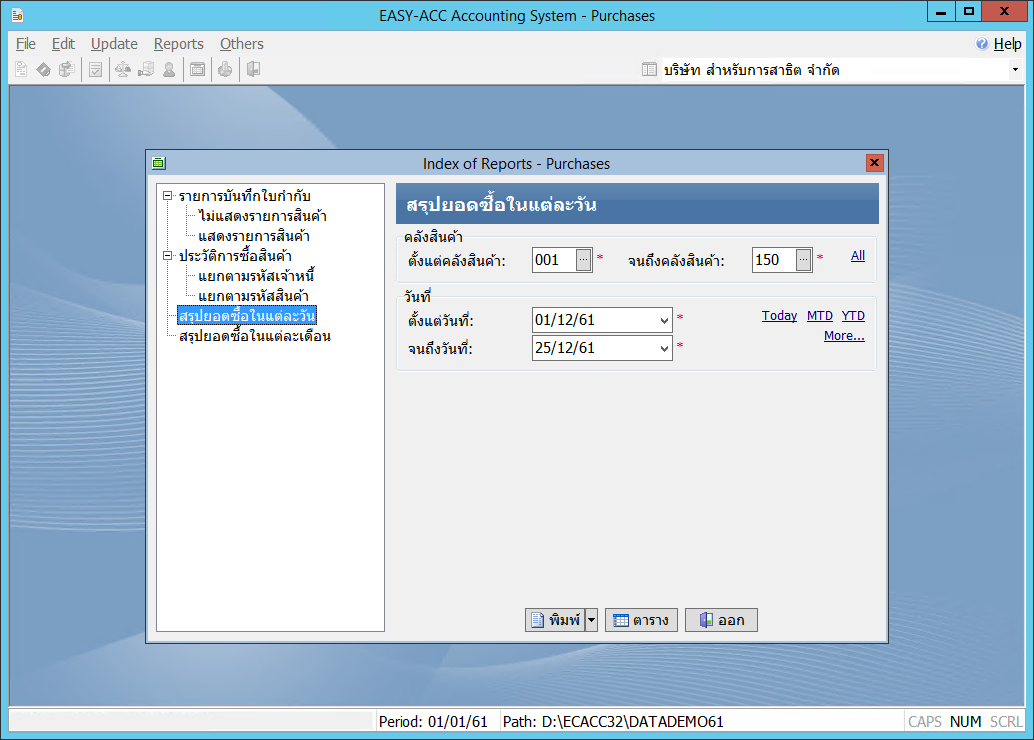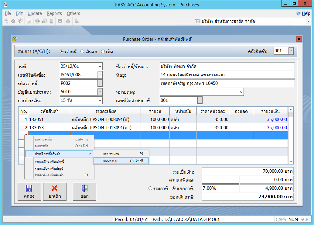 - จัดพิมพ์ใบซื้อสินค้าเพื่อใช้เป็นหลักฐานหลังจากการบันทึกรายการ