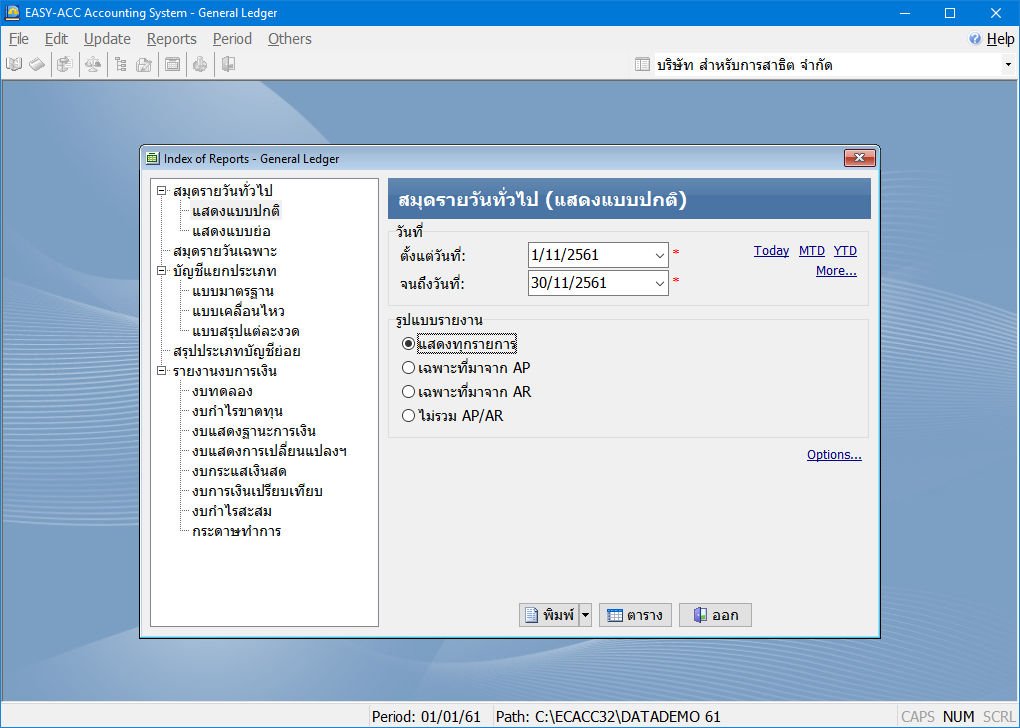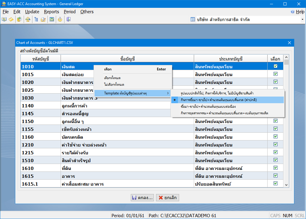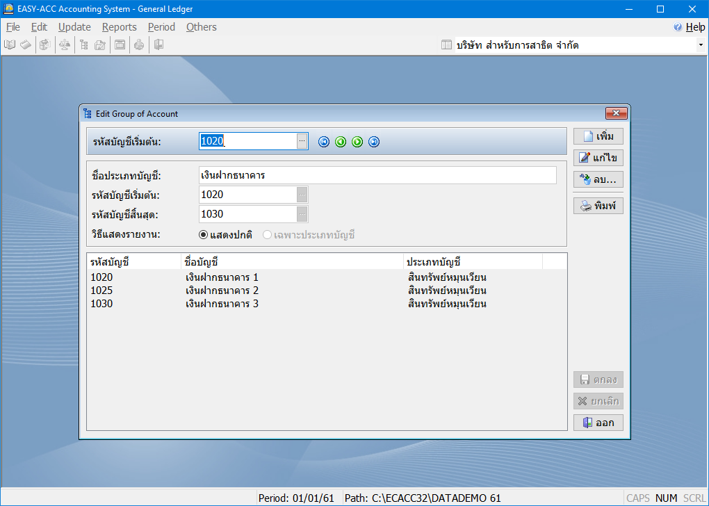 โปรแกรมบัญชีแยกประเภทและสินทรัพย์ถาวร