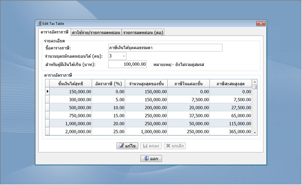 • ปรับแก้ไขตารางภาษี ประกันสังคม ค่าลดหย่อน ได้ด้วยตนเองเมื่อมีการประกาศเปลี่ยนแปลง