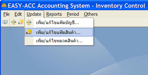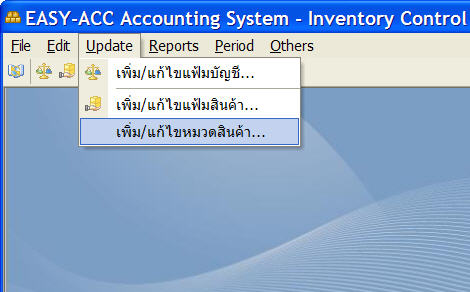 จากนั้น ให้เรียกโปรแกรมสินค้าคงคลัง แล้วคลิกที่ UPDATE เลือก เพิ่ม/แก้ไขหมวดสินค้า