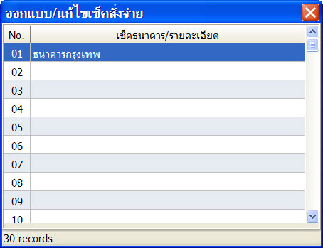 ในเมนู ออกแบบ/แก้ไขเช็คสั่งจ่าย เลือกธนาคารที่ต้องการ
