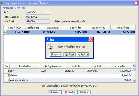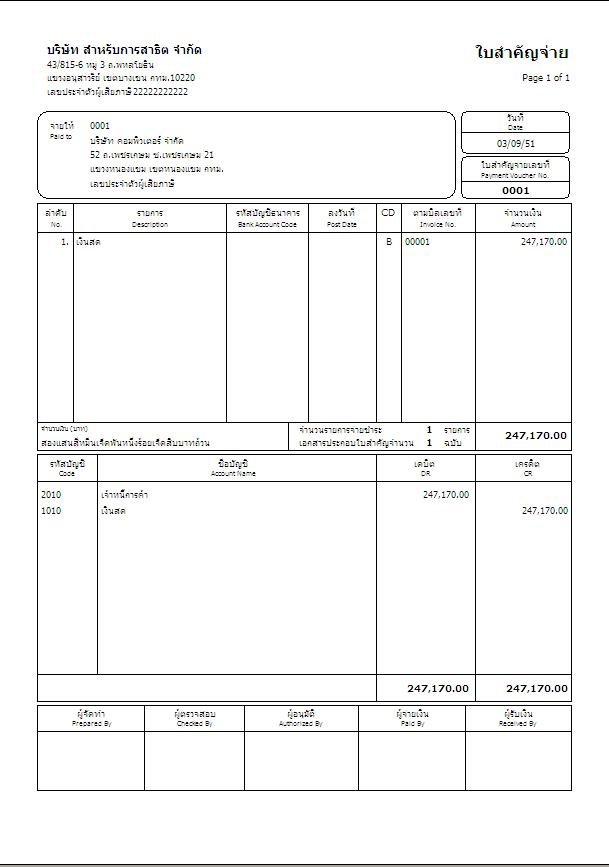 จะได้ใบสำคัญจ่ายออกมา ดังรูป