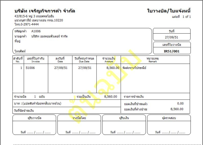 ดังนั้นให้ไปที่ Edit/ออกใบวางบิล ใบแจ้งหนี้