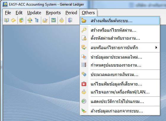 1. ให้กำหนดรายละเอียดของกิจการ และวันที่เริ่มต้นงวดบัญชีที่หัวข้อ Others / สร้างแฟ้มเริ่มต้นระบบ
