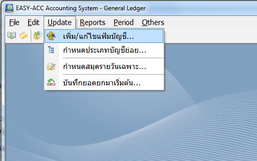 2. จากนั้นให้สร้างผังบัญชีที่จะใช้ในการบันทึกรายการค้าที่หัวข้อ Update / เพิ่มหรือแก้ไขผังบัญชี