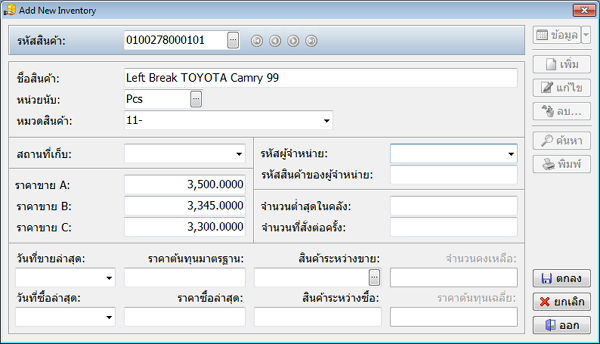 สำหรับการออกแบบรหัสสินค้าในโปรแกรม EASY-ACC รหัสสินค้า จะต้องมีความยาวไม่เกิน 13 หลัก